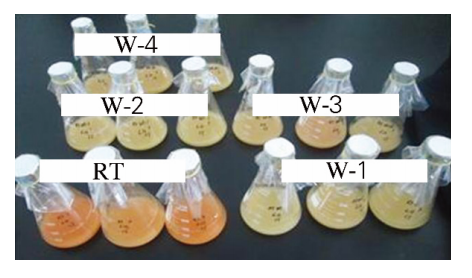 本研究以野生型的圆红冬孢酵母为出发菌株,利用常压室温等离子体(ARTP)进行诱变,筛选获得4株类胡萝卜素缺陷型圆红冬孢酵母突变株。对圆红冬孢酵母的野生型及类胡萝卜素缺陷型菌株进行发酵,并对其生物量、类胡萝卜素含量、油脂含量、脂肪酸组成及有机酸含量进行测定。结果表明,利用ARTP技术能够有效实现对类胡萝卜素代谢流的阻遏,突变株类胡萝卜素质量浓度较野生型菌株降低了70%。碳流代谢走向分析结果表明,类胡萝卜素代谢途径的阻断并未导致油脂合成途径的加强,反而造成圆红冬孢酵母生物量和油脂合成能力的分别下降48%和40%,对胞内脂肪酸组成也有较为显著的影响,其中突变株W-4所产硬脂酸、亚油酸及油酸质量分数较野生型菌株分别下降了60%、42%和77%。类胡萝卜素合成途径阻断后,碳流主要指向有机酸合成,其中乙醛酸、乳酸、苹果酸及琥珀酸变化较为显著。类胡萝卜素缺陷型突变株中大量积累的类胡萝卜素合成前体主要流入了有机酸合成途径中。