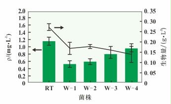 图2 野生型及突变株发酵96h后的生物量及类胡萝卜素质量浓度