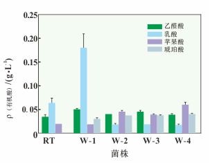 图5 野生型及突变株限氮培养5d后发酵液上清有机酸质量浓度