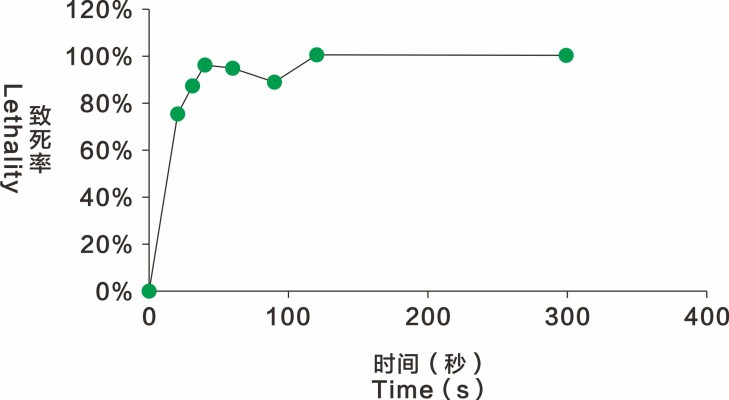 图4 不同诱变时间下,测定菌株细胞的ARTP诱变致死率