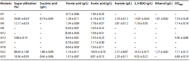 Table5 Fermentation stability of mutants with non-detoxified hydrolysate