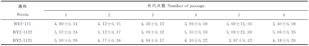 表2 60Co-γ射线-ARTP复合诱变菌株遗传稳定性