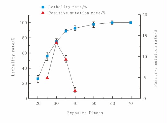 图1 ARTP诱变对菌株致死率和正突变率的影响(n=3)