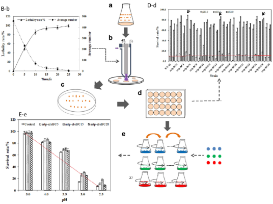 ARTP是近年来发展起来的一种基于大气压射频辉光放电的微生物诱变技术,与化学诱变或紫外线诱变相比,ARTP可以在常温(25-40℃)和常压下高效地诱导DNA链断裂。因此,利用ARTP和ALE可以为提高凝结芽孢杆菌抗逆性提供一个新的策略。通过本研究证明,ARTP诱变结合ALE可以提高凝结芽孢杆菌的益生菌性能,具有潜在的工业应用价值。