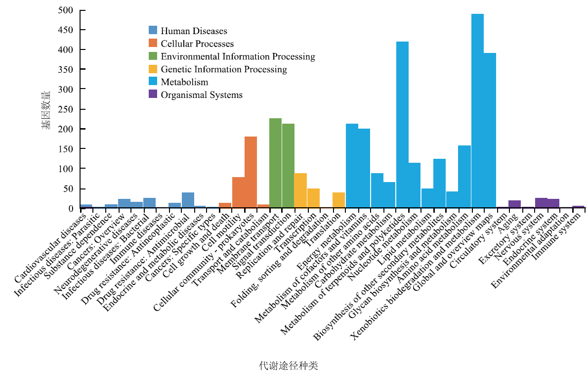 图5 WT/ARTP10s共有基因突变的KEGG数据库注释结果统计