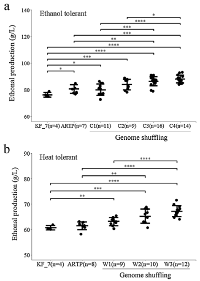 图2 基于ARTP突变和基因组重组的耐乙醇和耐热突变株的乙醇生产能力