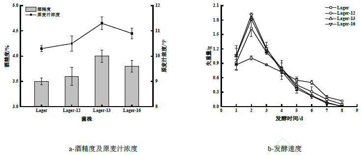 图2 Lager、Lager-12、Lager-13及Lager-16的发酵性能