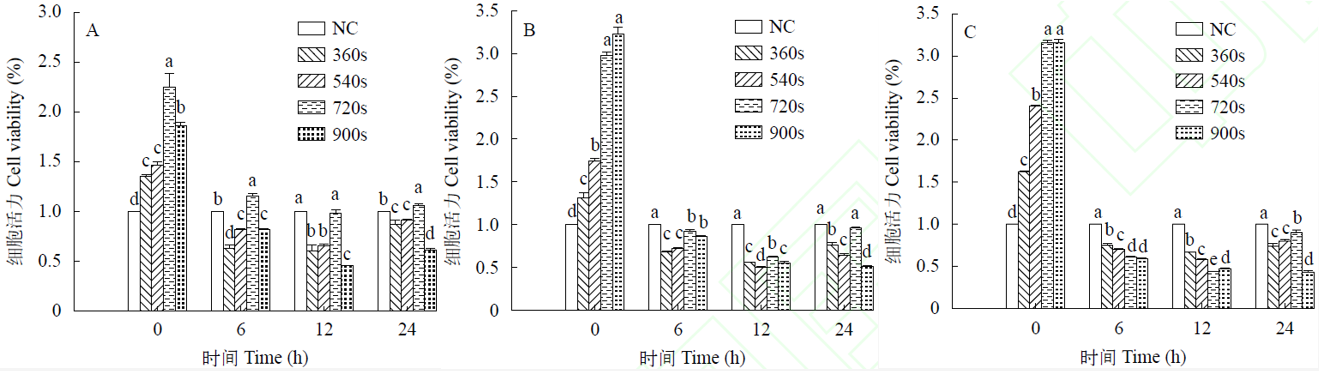 图2 培养进程中不同处理组外套膜细胞的活力分析
