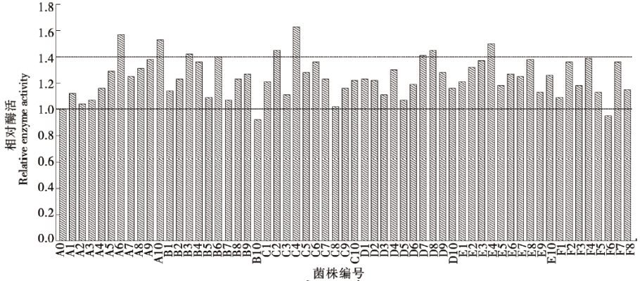 图5 出发菌株及突变株摇瓶复筛的酶活