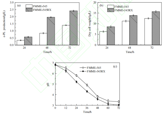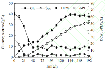 随着抗生素在医疗和食品领域的无节制滥用,我国人均抗生素消费量远高于世界平均水平,为我国的医疗健康和食品安全带来了巨大挑战,目前急需寻找抗生素的有效替代品。ε-聚赖氨酸(ε-poly-L-lysine,ε-PL)作为高安全性的广谱抗菌肽被人们认为是抗生素的有效代替品,具有很大的应用潜力。白色链霉菌作为ε-聚赖氨酸的主要生产菌株,但在发酵过程中存在发酵周期过长、产量低、工艺不稳定等缺陷,导致其在工业化的过程中成本较高。