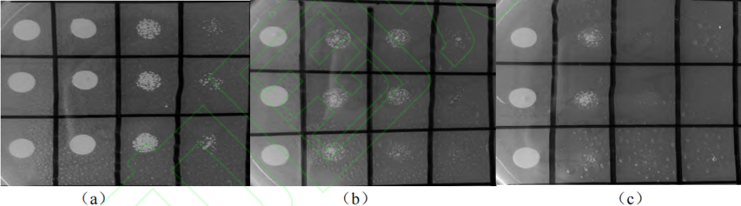 图2 点样法双硫仑梯度浓度平板菌种生长情况