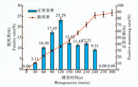 青枯雷尔氏菌是青枯病的主要致病菌,可致番茄、花生、芝麻、茄子和辣椒等400 多种植株在不同时期和部位发病。目前青枯病主要以化学防治为主,但长期使用化学药剂会造成一定环境污染并易诱发病原菌的抗药性。因此,开发作用机制独特的新型生物防治药剂成为当今青枯病病害防治的热点之一。近年来,有研究发现复合菌剂能提高叶片 SOD、CAT和 PAL的酶活性,防治效果显著。而黑曲霉常作生物防治中的拮抗菌株,其对根癌农杆菌、青枯雷尔氏菌和桔青霉等均具有抑制作用。其广谱抑菌性和安全性,常被作为优良生防菌应用在农业生产上。但随着时间推移,菌株拮抗能力下降明显,存在退化和遗传性状不稳定等问题,物理诱变法筛选获得抑菌活性较强的正突变株是提高原始菌株拮抗能力的有效方法。因此,为了在该菌株现有抑菌活性基础上提高菌株抑菌活性并提高菌株遗传稳定性,本研究使用常压室温等离子体(ARTP)对黑曲霉xj进行诱变研究。