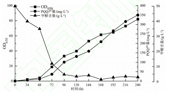 吡咯喹啉醌(PQQ)是一种红褐色、芳香、三环邻醌的化合物,作为辅因子参与电子传递。在食品、医药和化妆品领域具有重要的应用价值。近几年,微生物发酵法合成PQQ受到了越来越多的关注。