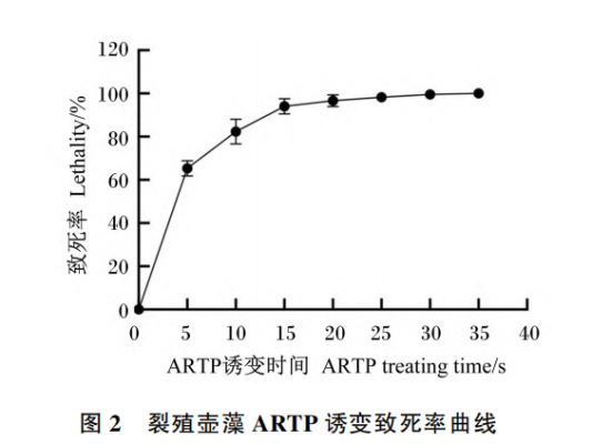 裂殖壶藻是一种海洋微藻,富含二十二碳六烯酸(DHA)等长链不饱和脂肪酸。DHA 是 ω-3多不饱和脂肪酸的一种,具有抗氧化、降血压以及预防心脑血管疾病的功能。饲粮中添加裂殖壶藻可显著提高犊牛生长性能,并一定程度上缓解犊牛腹泻,但自然界筛选的野生藻种无法满足工业生产的需要,因此获得一株富含 DHA 的裂殖壶藻生产藻株有重大研究和应用意义。传统紫外及化学诱变存在正向突变率低、诱变效果差等问题。因此,本研究采用常压室温等离子体(ARTP)作为诱变方法开展试验,ARTP是近年来新兴的一种诱变技术,它产生高能氦气等多种活性粒子诱发其产生基因突变,具有操作简便、高效安全、正向突变率高等优点,已得到了广泛应用。