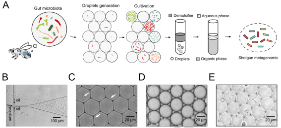 ▲图丨微流控液滴中蜜蜂肠道细菌的单细胞封装和培养(来源:研究论文)