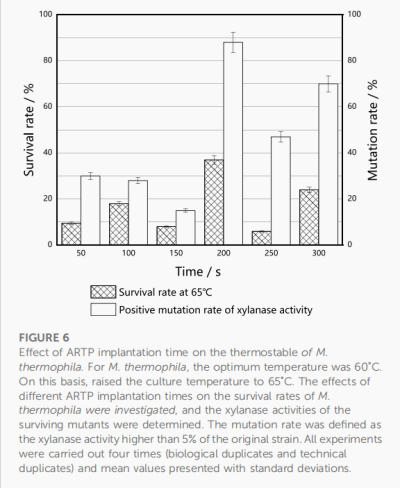 [1] Zhang N, Jiang Y, Sun Y-J, Jiang J-C and Tong Y-J (2023), Breeding of a thermostable xylanase-producing strain of Myceliophthora thermophila by atmospheric room temperature plasma (ARTP) mutagenesis. Front. Bioeng. Biotechnol. 10:1095323.