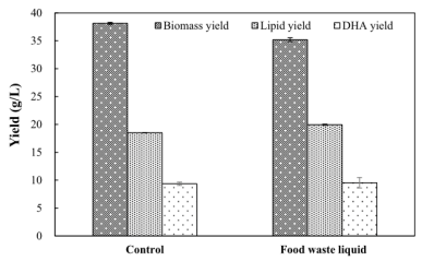 本研究为了改良菌株和降低发酵培养基成本,采用ARTP诱变和MMC获得了一株高产DHA的破囊壶菌,随后添加厨余废水取代部分培养基以降低生产成本。结果表明,DHA产量增加最显著的是突变体Auntiochytrium sp.MA20,其生物量、脂质和DHA产量分别比原始菌株提高29.0±0.24、15.8±0.11和9.22±0.37g/L,分别提高5.77、16.9和83.2%。与原始菌株相比,Auantiochytrium sp.MA20的DHA在总脂肪酸中的比例从37.2%增加到58.3%,而DHA在生物量中的比例则从18.4%增加到31.7%,可稳定遗传。用厨余废水代替发酵培养基中100%的酵母提取物和50%的海水,DHA产量达到9.54g/L,与传统培养基相当,同时培养基成本降低45%,实现了厨余废水的回收利用。