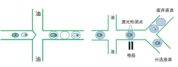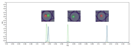 本实验通过将绿色和红色荧光微球混合后进行液滴包裹,然后对液滴进行双激光同时激发和检测,获得微球在液滴内包裹状态的数据,从而验证DREM cell平台对多色荧光检测和筛选的功能适用性,为相关应用奠定基础。