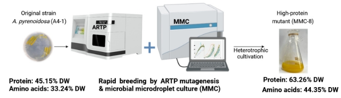 随着全球人口的增长,对食物的需求也在增加,这加剧了在耕地减少和对传统肉类生产的伦理担忧中寻找新蛋白质来源的需求。微藻作为一种有前途的替代蛋白质来源,富含蛋白质、氨基酸、多不饱和脂肪酸(PUFAs)、维生素和矿物质。然而,在异养培养条件下,由于光合作用依赖的蛋白质合成减少,微藻通常表现出较低的蛋白质含量(<40% 干重),限制了其作为替代蛋白质来源的潜力。为了克服这些挑战,开发具有天然高蛋白质含量的新型微藻菌株对于通过异养发酵高效大规模生产蛋白质至关重要。